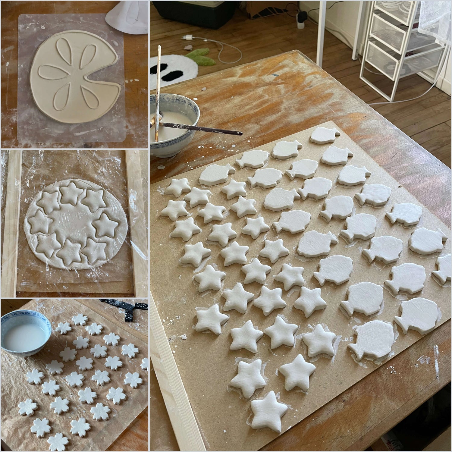 Certaines de mes anciennes pièces (mononoké, Susuwatari et le chat noir) ont d'abord été façonné à la main en argile. Ensuite, je crée un moule basé sur cette création, me permettant ainsi de la reproduire en plâtre.