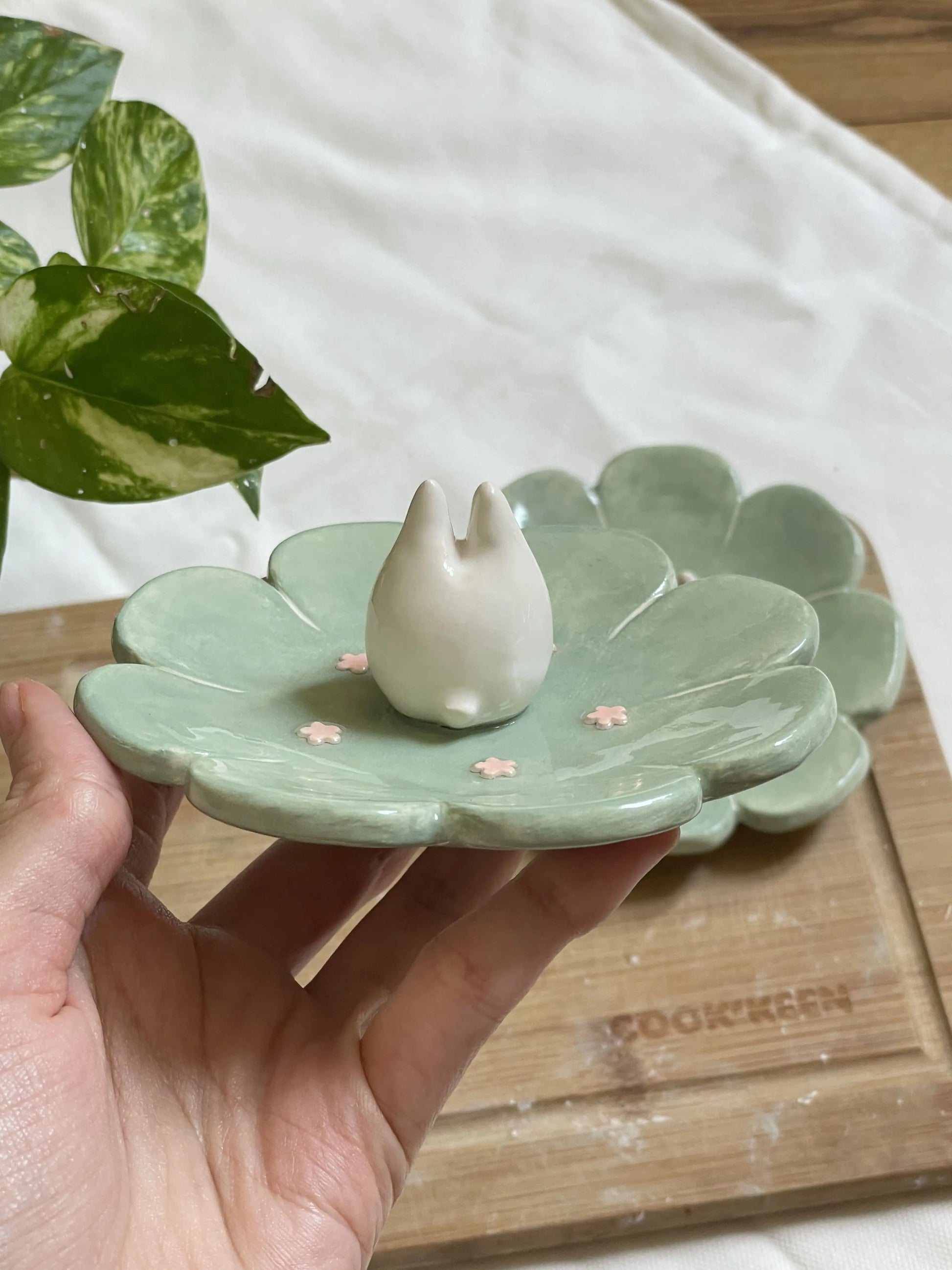 Petite coupelle et porte bague inspirés de l'univers de Totoro, parfaite pour accueillir vos bijoux et surtout vos bagues sur ses petites oreilles 🤭 ou simplement décorer un coin de table !